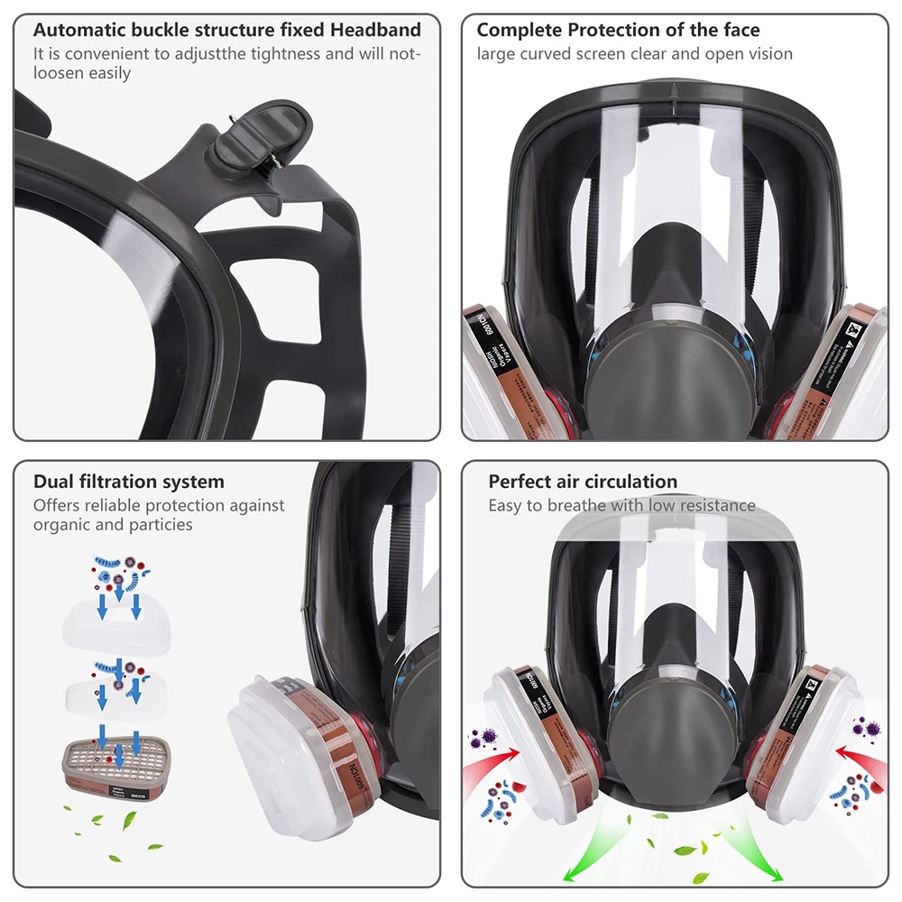 Masker Gas Respirator Full Face with Activated Carbon Filter 6001 / pelindung wajah / masker / aksesoris pelindun muka / masker anti kabutg muka