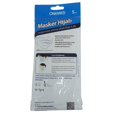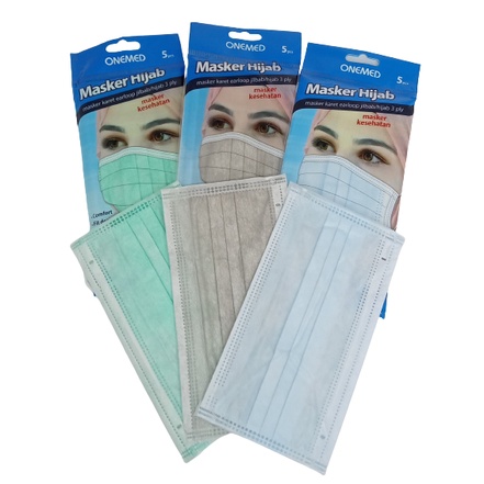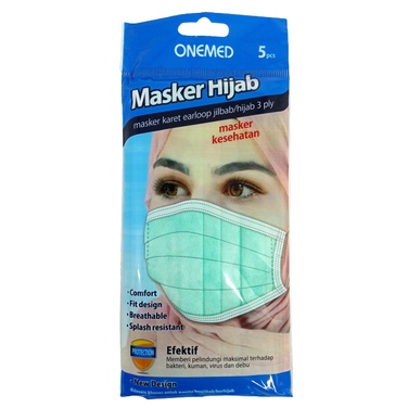 Masker Hijab Onemed Karet Earloop Jilbab Atau Hijab 3 Ply Fit Design Masker Kesehatan Isi 5 Pcs