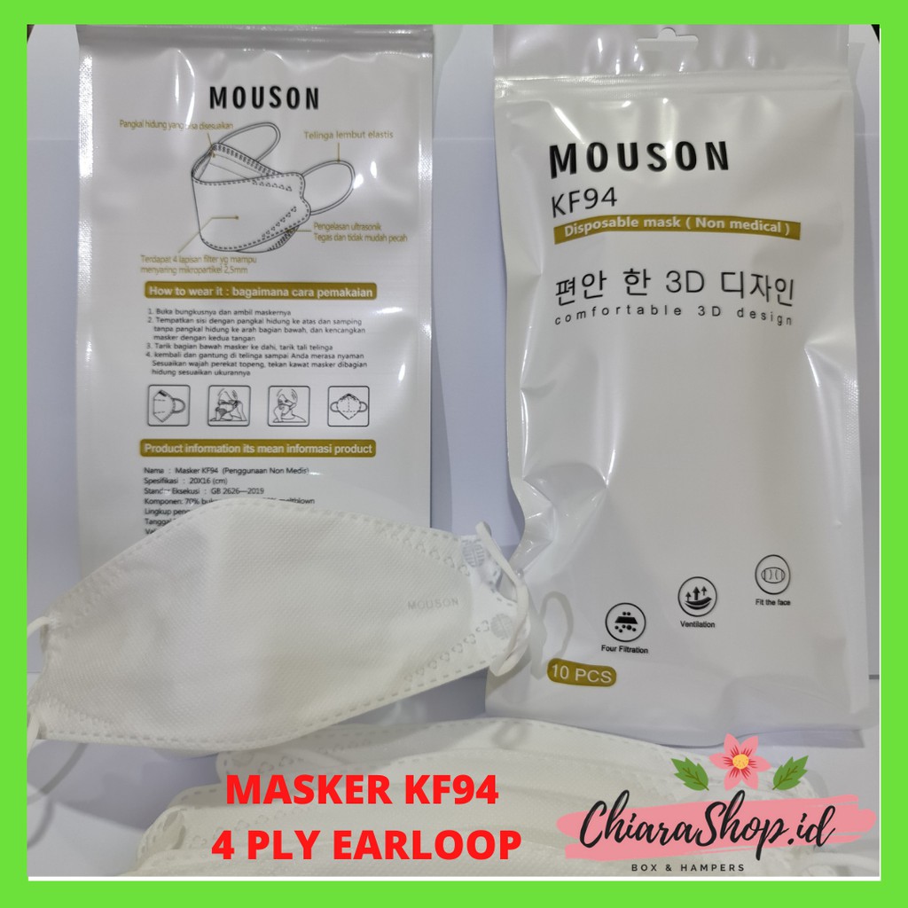 Masker KF94 4ply Earloop - Masker KF94 Korea Convex 4 Ply isi 10 pcs - Disposable Mask KF94