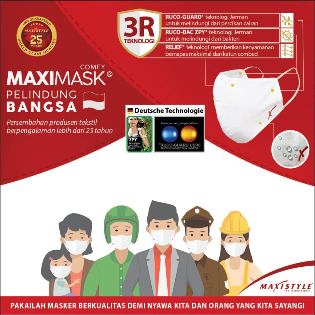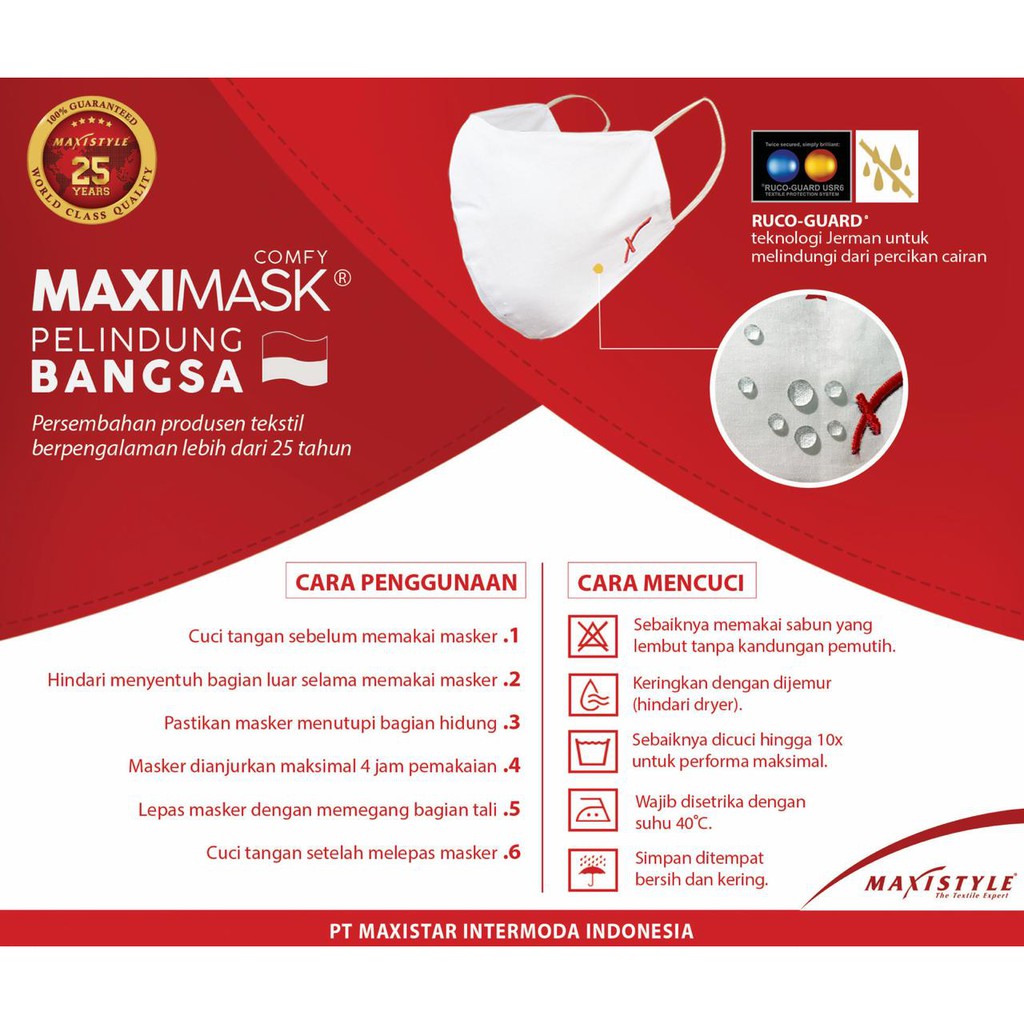 Masker Kain anti bakteri anti air non medis 2 lapis 2 ply maximask earloop bukan sritex dan mecs lab