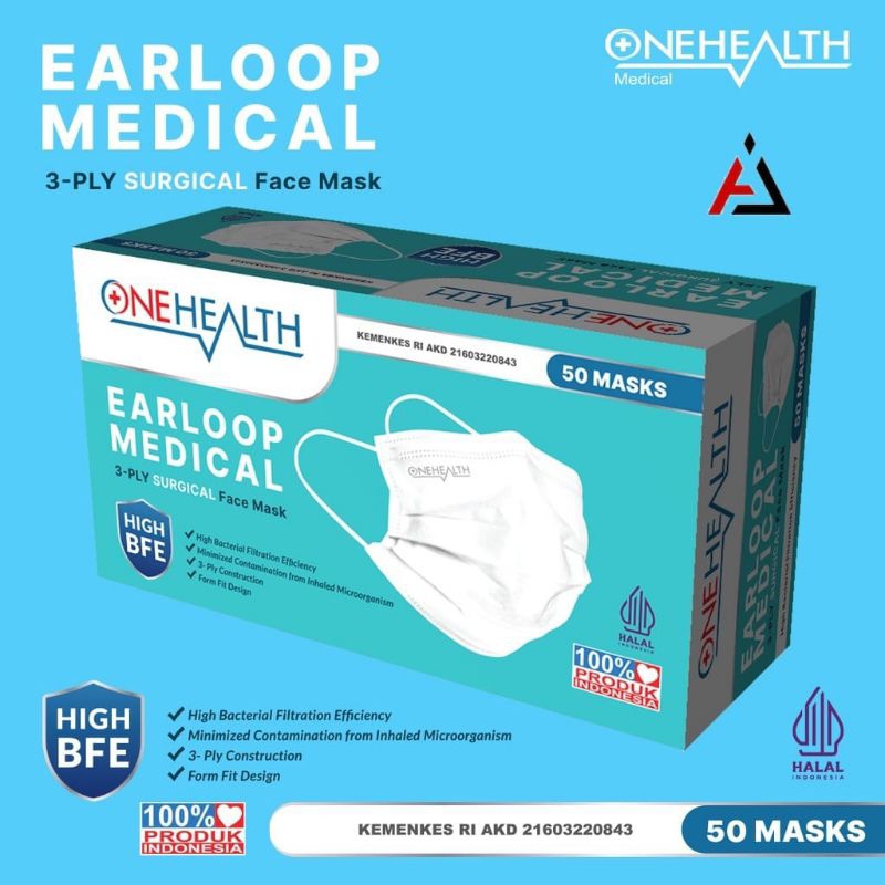 Masker Medis 3 Ply Onehealth Per Box isi 50 Pcs / Surgical Face Mask