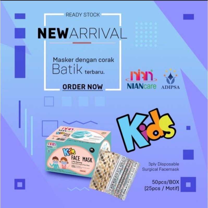 Masker Medis Nian Care ANAK 3ply Earloop 50 pcs KIDS Surgical Mask