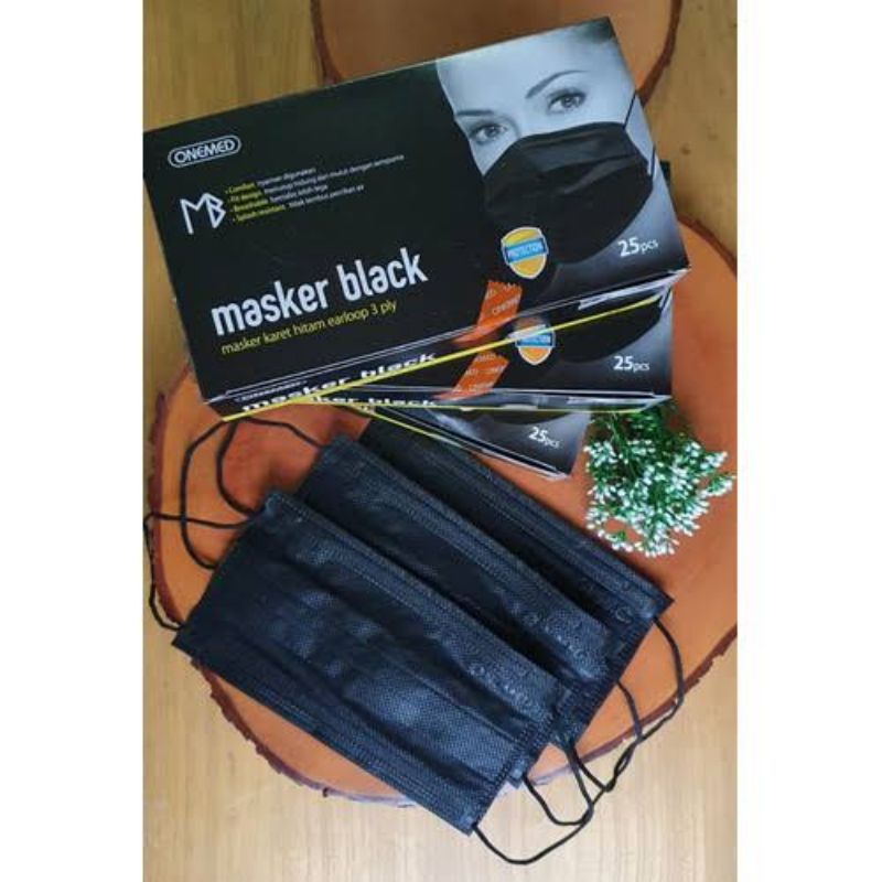Masker Medis Onemed Hitam isi 25 / Masker All Black Onemed