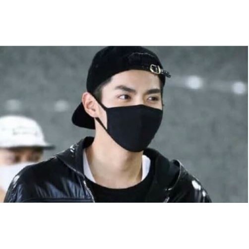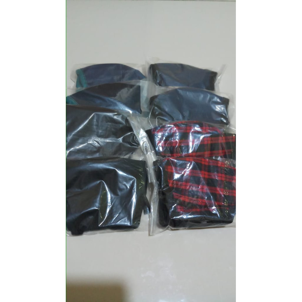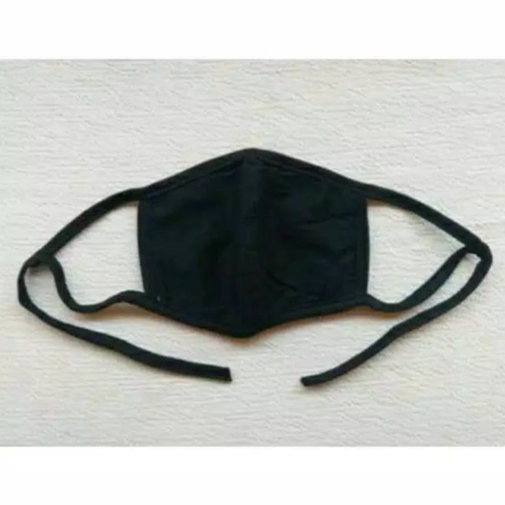 Masker Polos Hitam / Masker Tebal 2 Lapis Kain Warna Hitam Dongker dan Motif Kotak Bisa Untuk Hijab