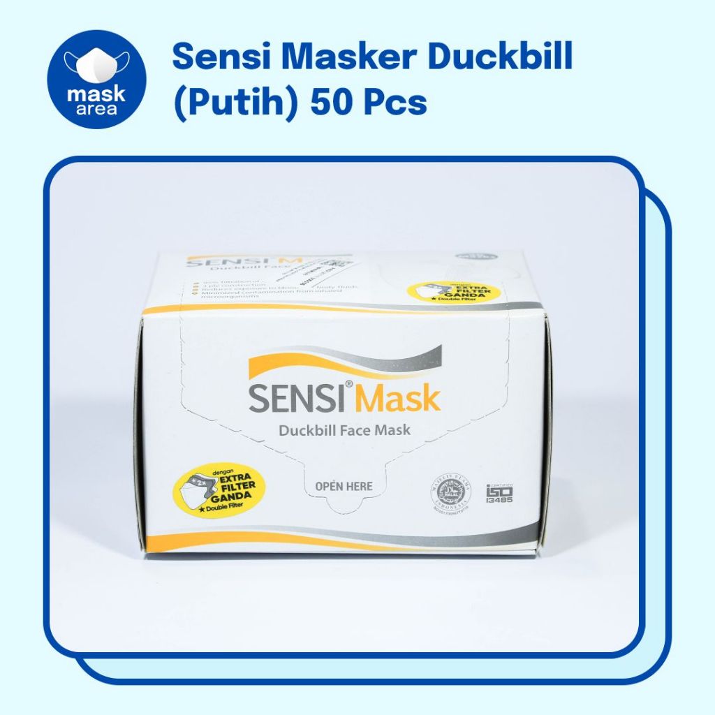 Masker Sensi Duckbill (Cantol) Putih Non-Medis 4 Ply 50 Pcs (Box)