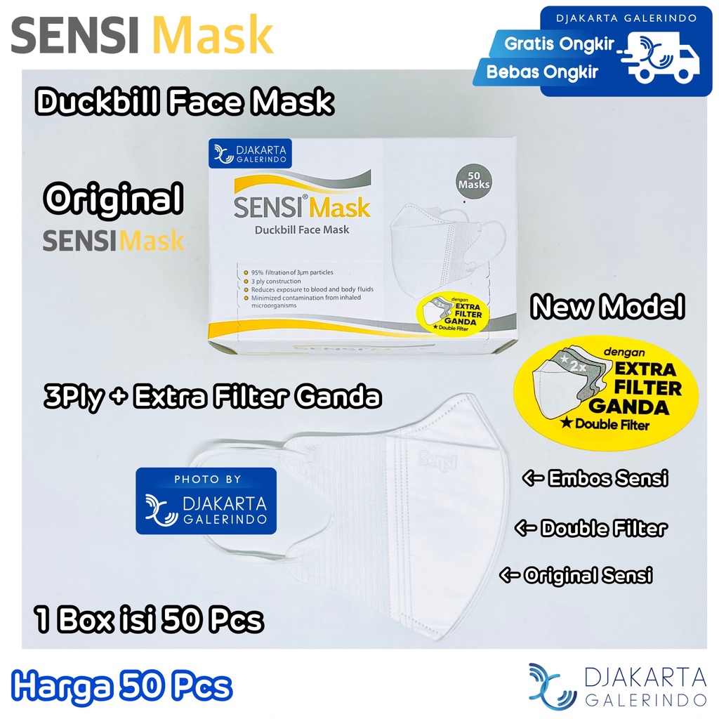 Masker Sensi Duckbill Original - Sensi Duckbill XL Double Filter Ganda 3ply Original Sensi Box 50 pcs