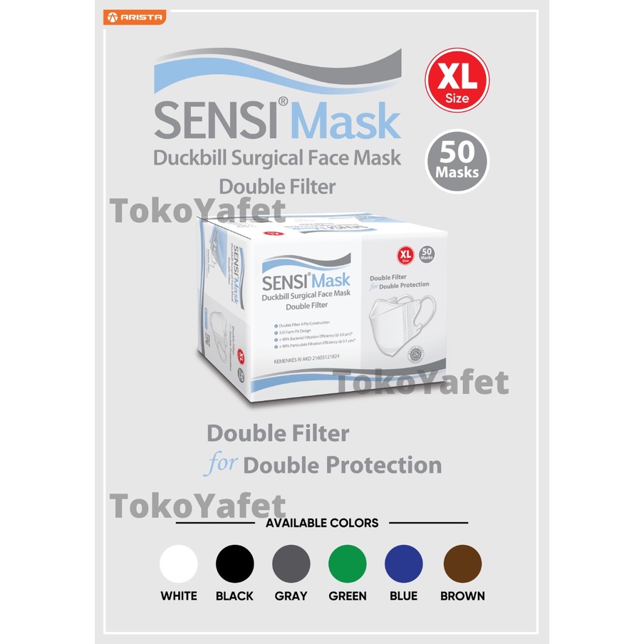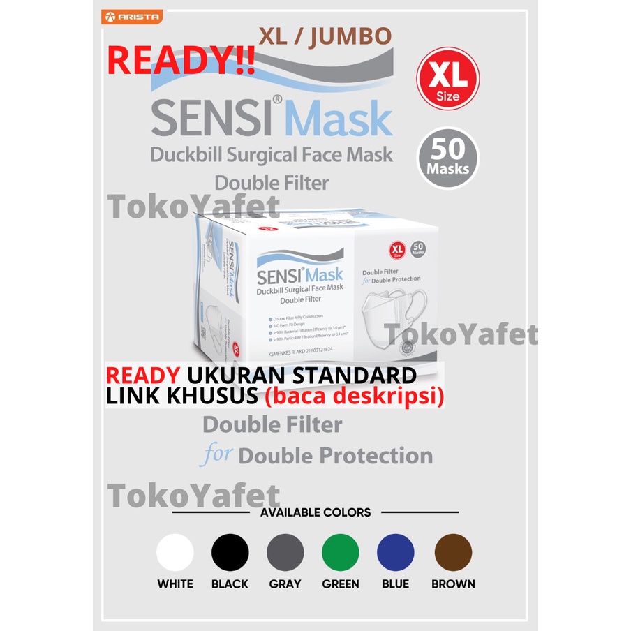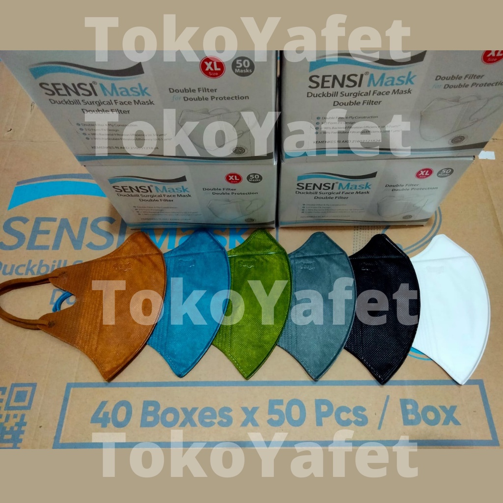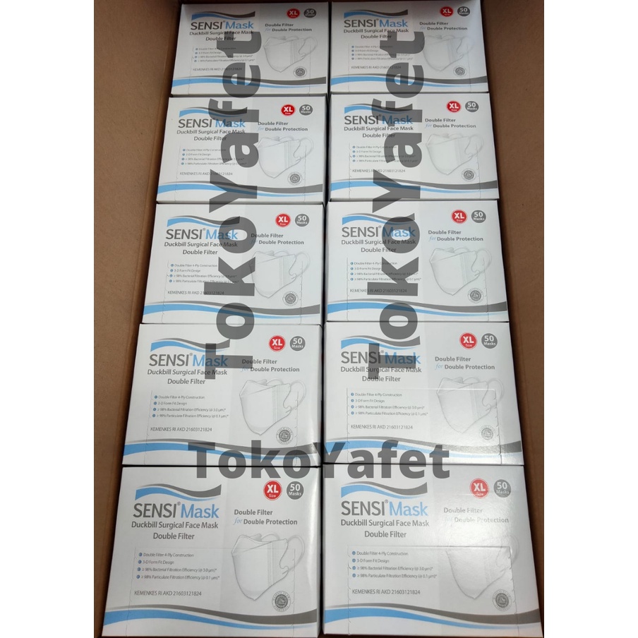 Masker Sensi Mask Duckbill Ukuran XL Jumbo 4 ply isi 50 pcs Original Asli Surgical Face Mask Double Filter Protection bukan convex KN95