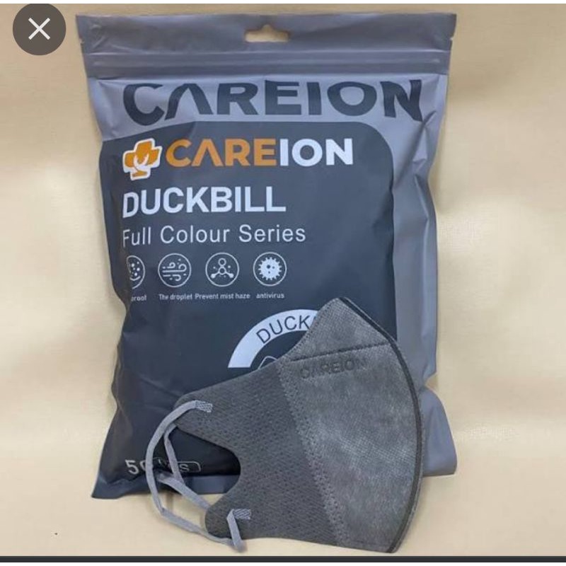 Masker duckbill grey abu abu careion we mask FM Careion ccare ocare kemenkes ada garis mirip sensi tali senada