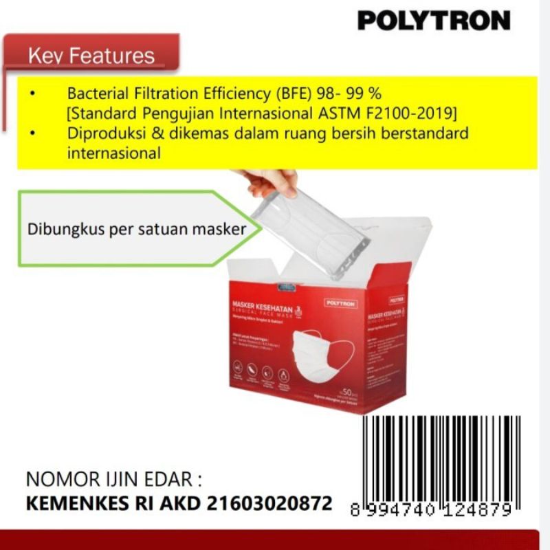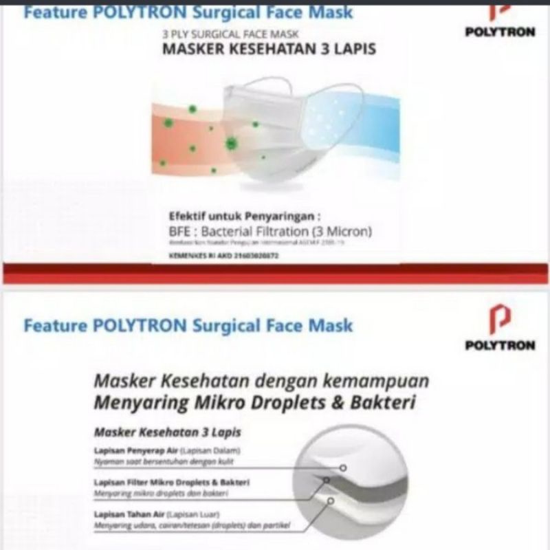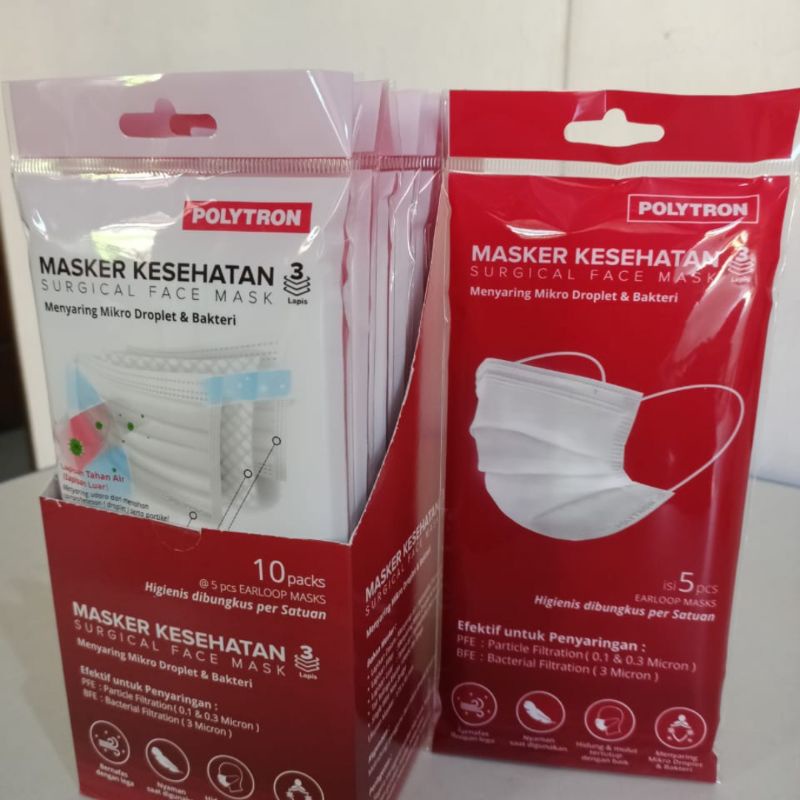 Masker medis polytron (10 PACK x 5 PCS)