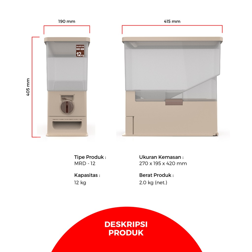 Maspion Rice Box Kotak Beras kapasitas 12 Kg MRD-12