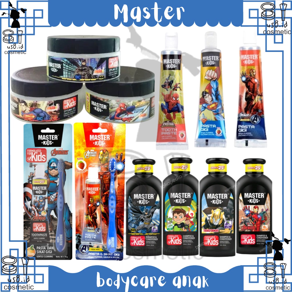 Master Kids || Master Kids Shampoo & Conditioner 150ml / Styling Gel 75gr / Spray Cologne 100ml || Shampoo & Conditioner 200ml 100ml || Master Kids Styling Gel 75gr || Master Kids Shower Gel 175 mL || Master Kids