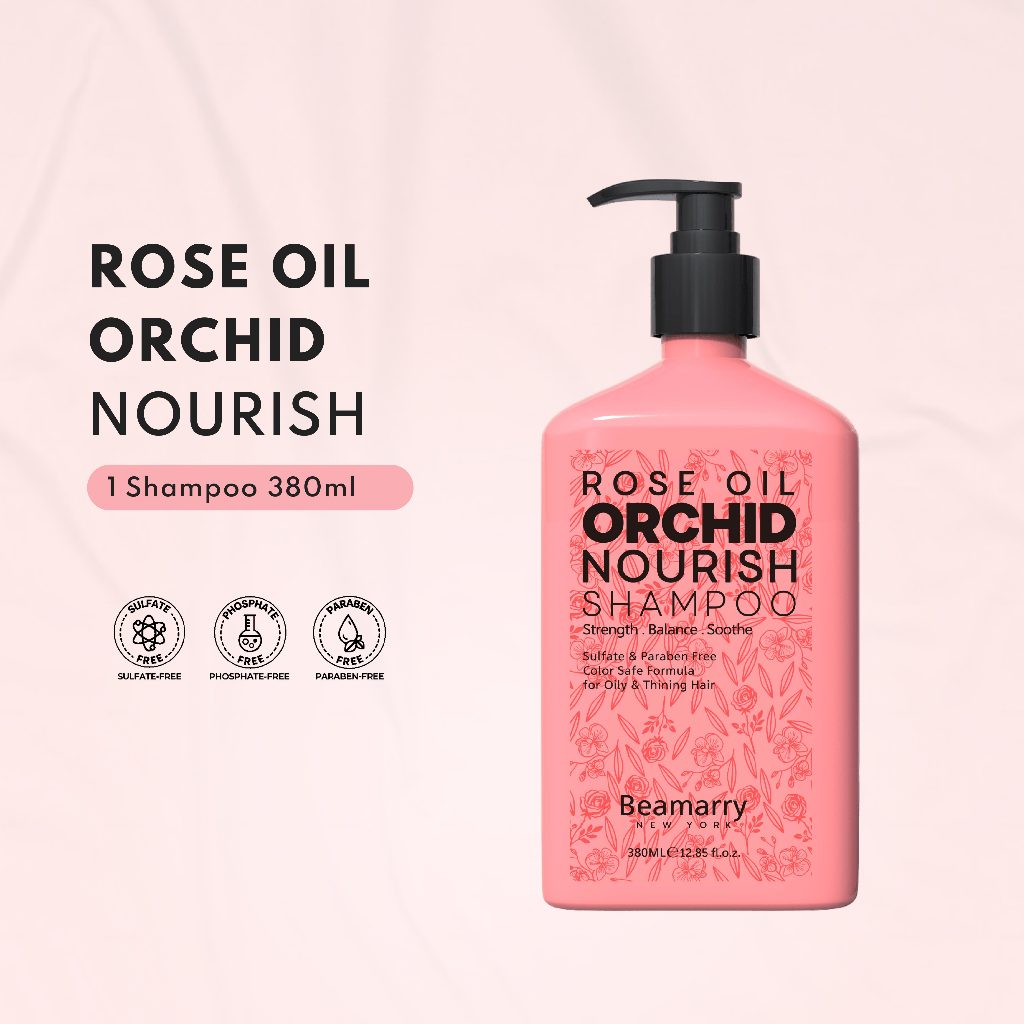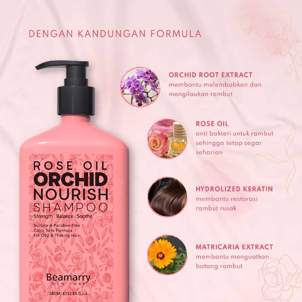 Beamarry New York Shampoo Rose Oil Orchid |380ml| Anti Lepek – Rambut Segar & Wangi – Shampoo Anti Bau |BPOM – No SLS – No Phospate – No Paraben|