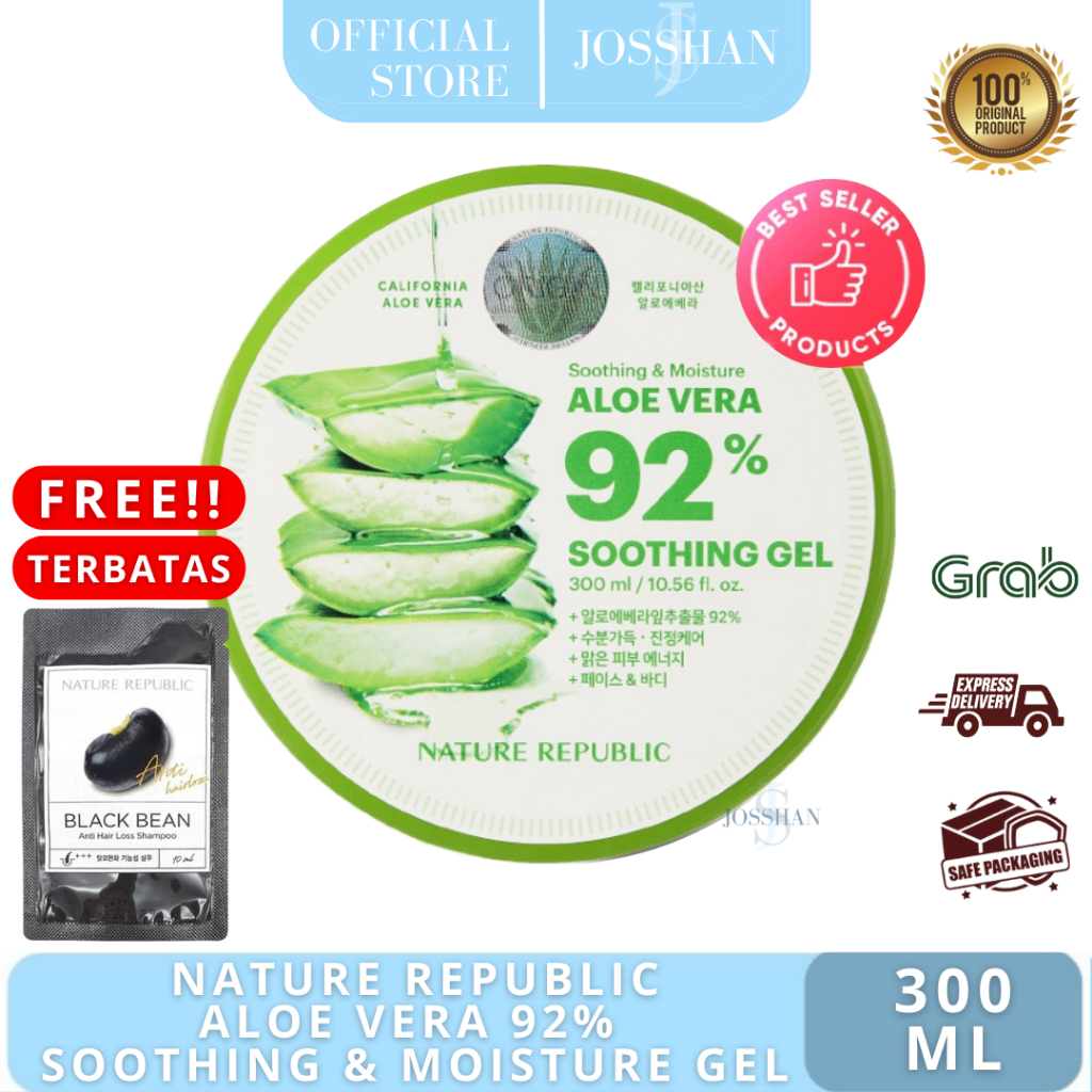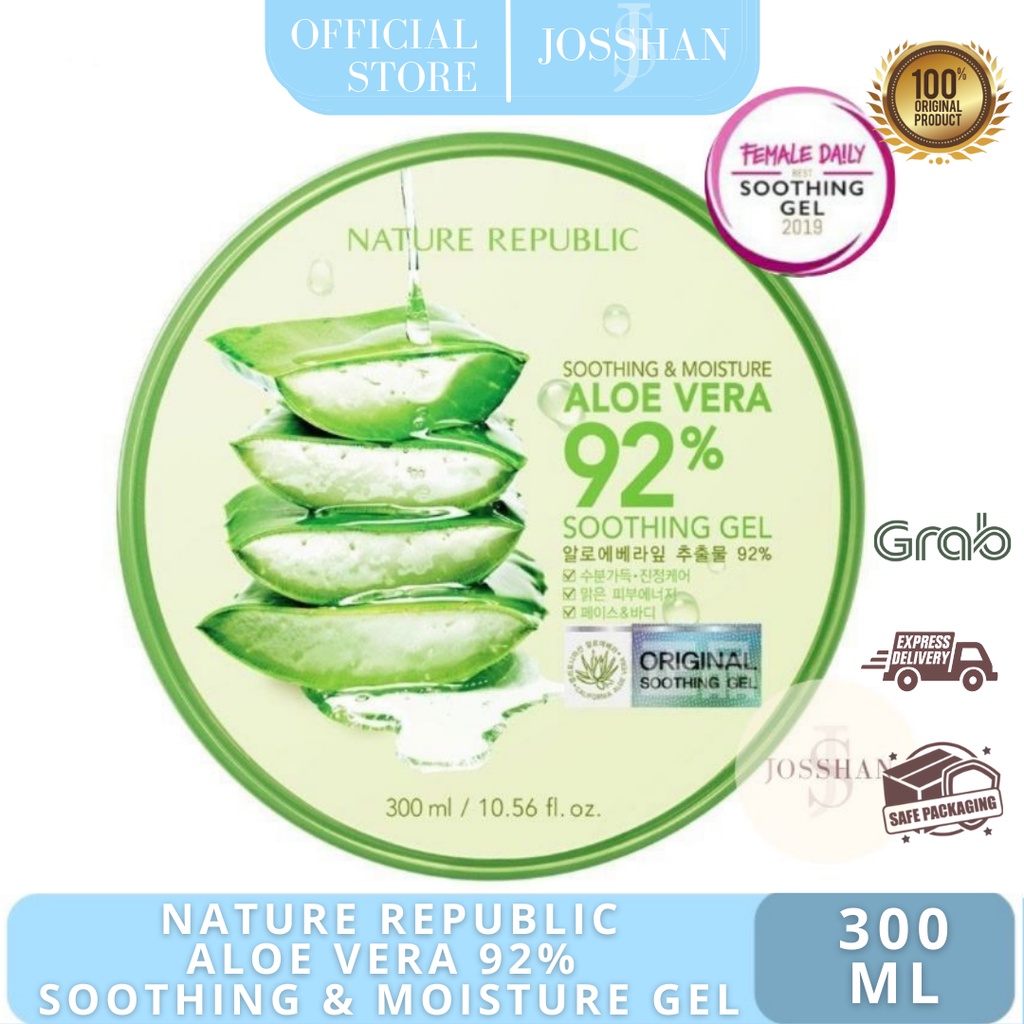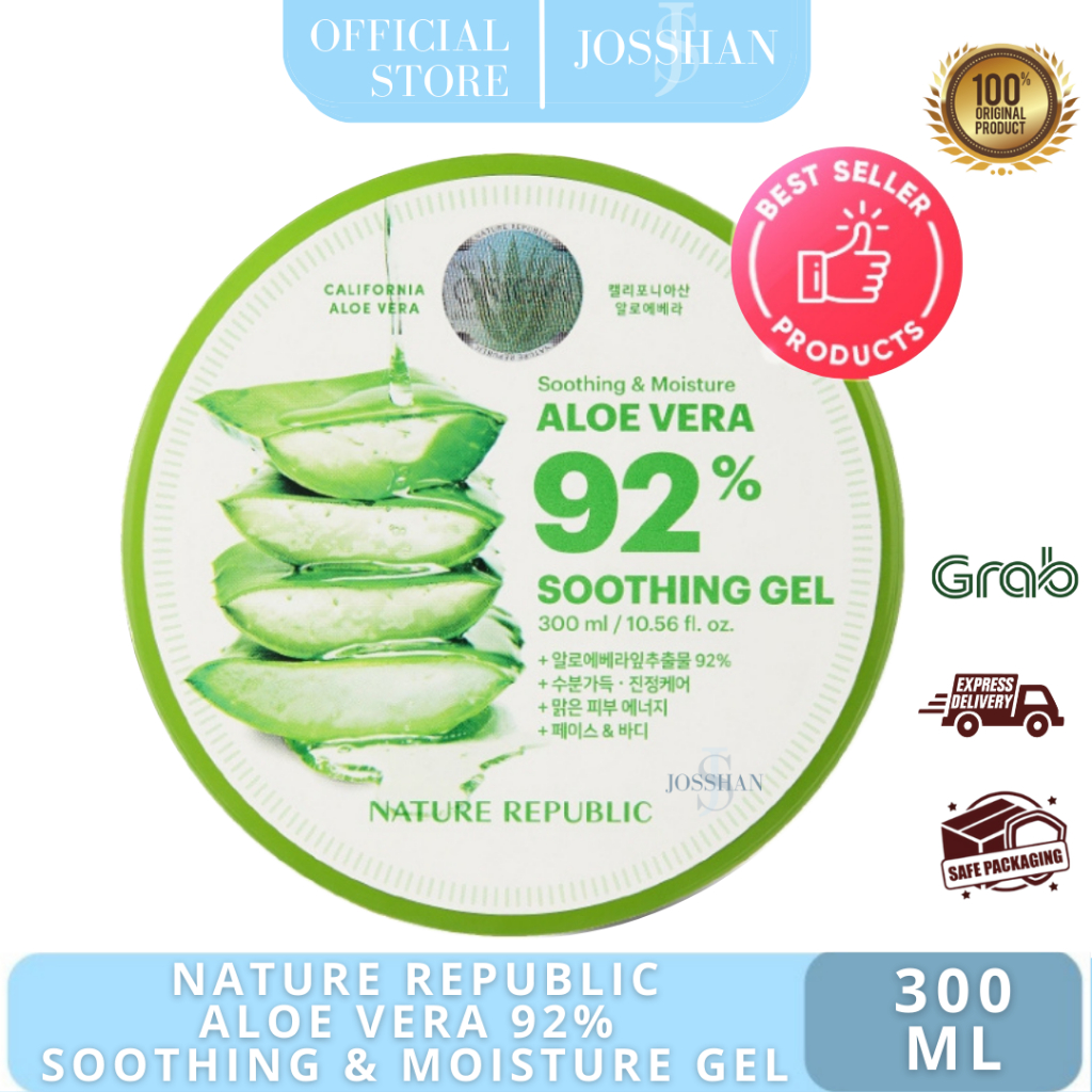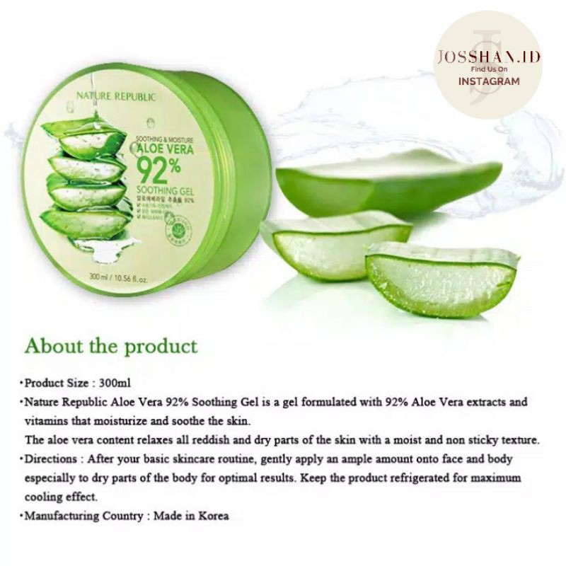 EXP 2027 [Original 100%] BPOM NATURE REPUBLIC Aloe Vera 92% Soothing Gel 300ml Jar Logo Original | Aloe Vera Gel | Aloe Vera Nature Republic | Aloe Vera BPOM | Nature Republic Aloe Vera BPOM | Aloe Vera Jar 300ml Nature Republic | Gel Aloe Vera NR