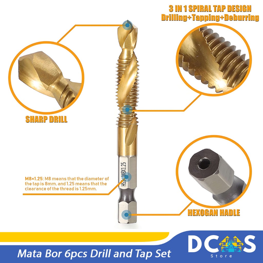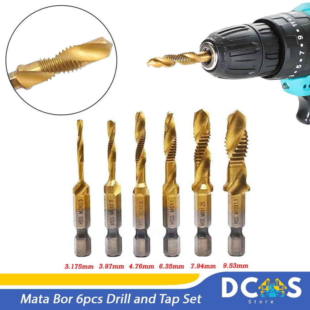 Mata Bor 6PCS Drill and Tap Set Pembuat Ulir Drat Twist Spiral Tapper
