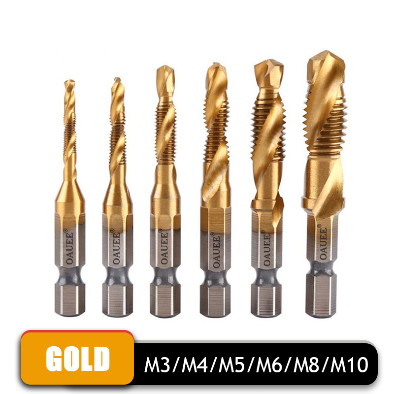 Mata Bor 6PCS Pembuat Ulir Drat Drill Tap Set Hex Twist Spiral Tapper Baut Bit Drilling Tapping Deburring