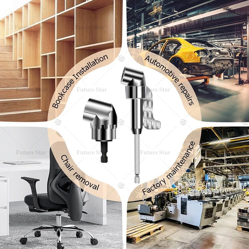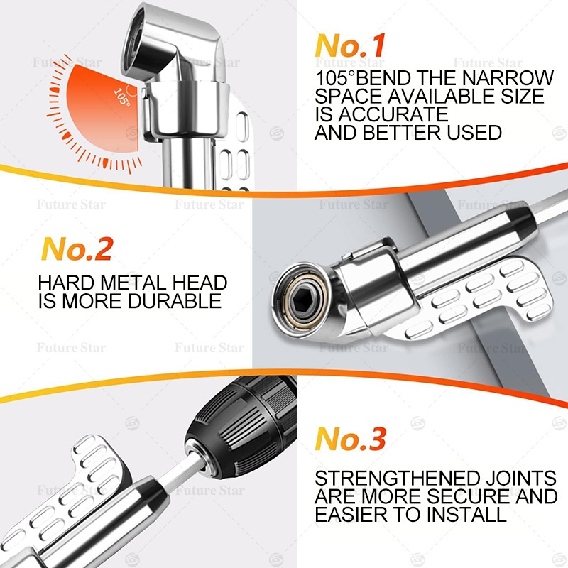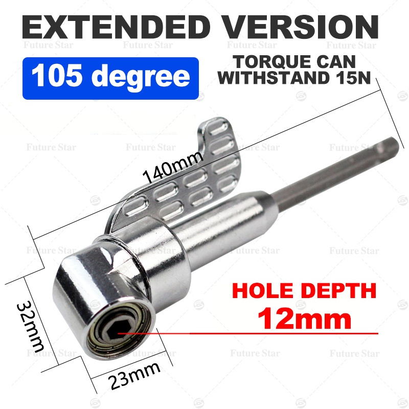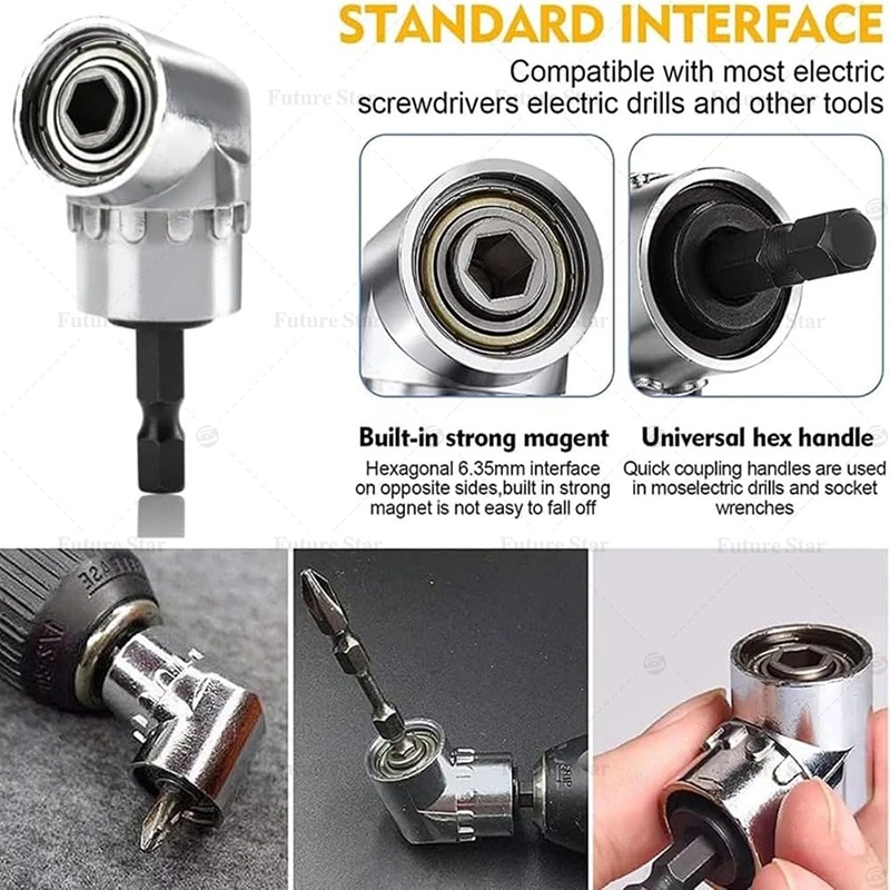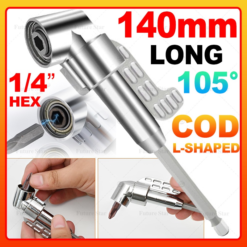 Mata Bor Siku Drill Extension Obeng L Shape Panjang Angle 1/4 Hex Bit Socket Kit Ekstensi Set 105 Degree Right Angle Drill Adapter Power Drill Screwdriver Attachment Long 55mm 140mm