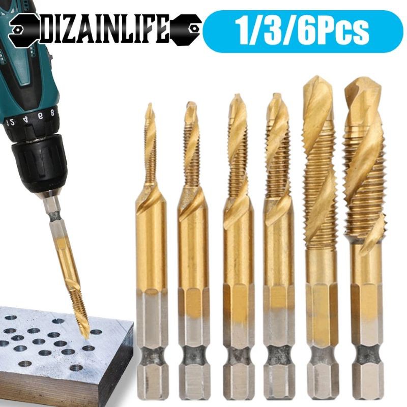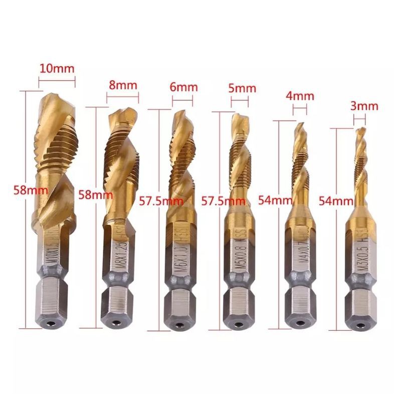 Mata Bor Tap Membuat Ulir Drat Mur Baut Mata Bor Besi Kayu Plat Alumunium Baja M3-M10 6pcs