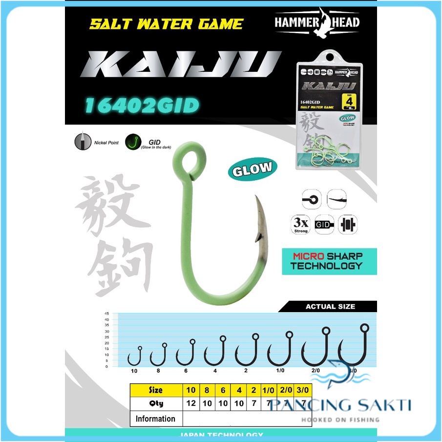 Mata Kail Pancing Jig Laut HAMMERHEAD Kaiju 16402GID Glow in the Dark Menyala Nyala Dalam Gelap Set Kail Carbon Alat Pancing Lubang Pancingan Murah