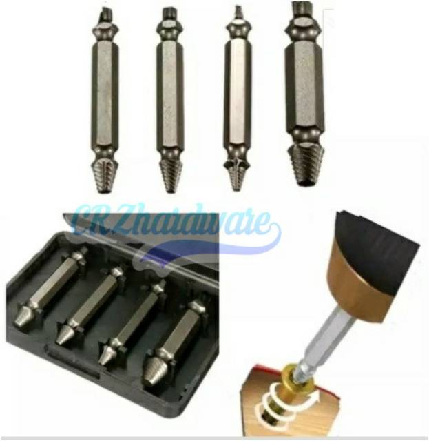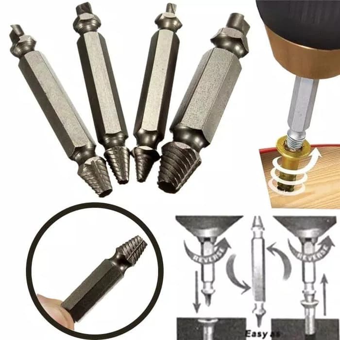 Mata Obeng Mata Bor Pencabut Baut Rusak Screw Extractor Broken Striped 4 Pcs
