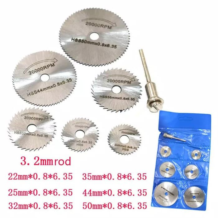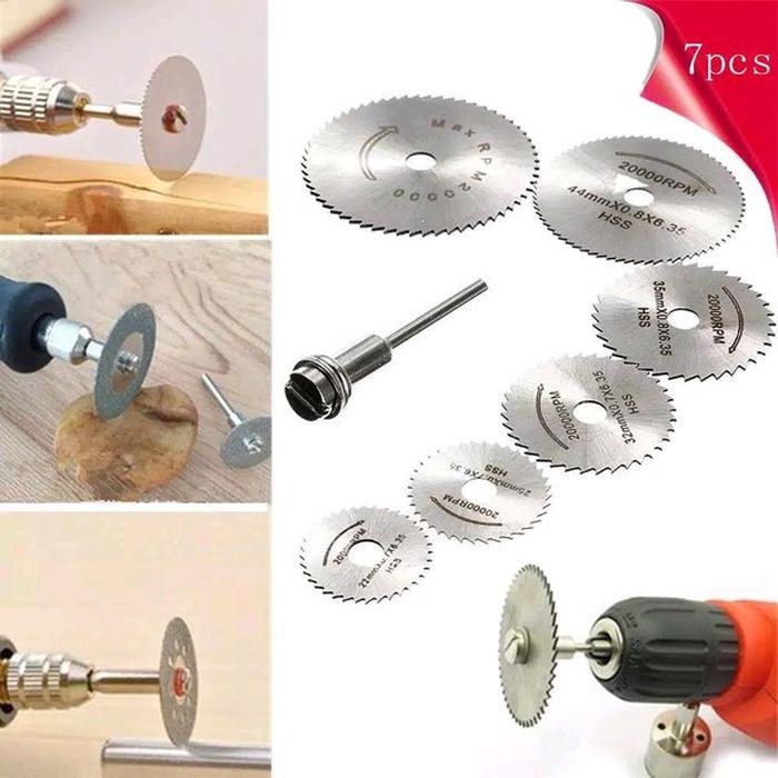 Mata Pisau Mini Grinder SET 7 Pcs Saw Blade Mini Grinder 7 pcs Mata Potong Gerinda Mini Mata Pisau Kayu Die Grinder Mata Gergaji Mini 7 Pcs Mata Potong Gergaji Bor Gerinda Mini Tuner Bit Pemotong Kayu PVC HSS