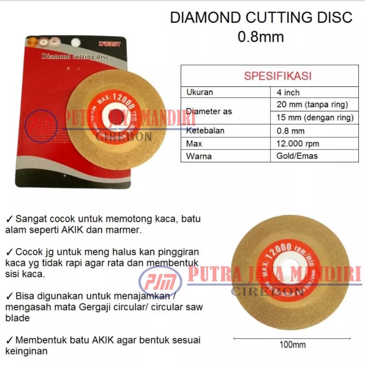 Mata Potong Kaca / Diamond Cutting Disc 0.8 mM / Pisau Potong Kaca Batu Alam Akik / Pisau Bevel Diamond Gosok Kaca