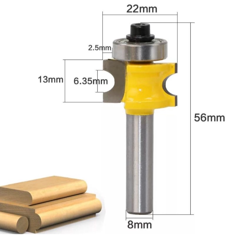 Mata Profil Setengah Lingkaran Router Bit Trimmer Shank 8mm - 1/2 Inch Bullnose Half Round