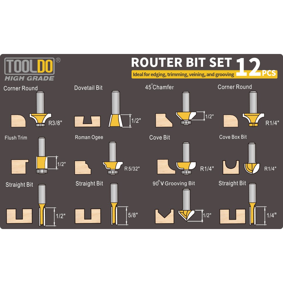 Mata Router set - Mata Profil - Mata Trimmer Set Router Bit Set 12pc