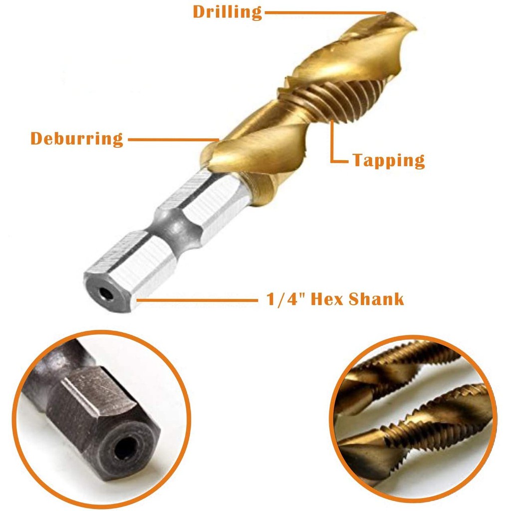Mata bor ulir drat tap set 6 Pc Hex Twist Spiral Tap per Baut Bit Drilling Tapping Deburring