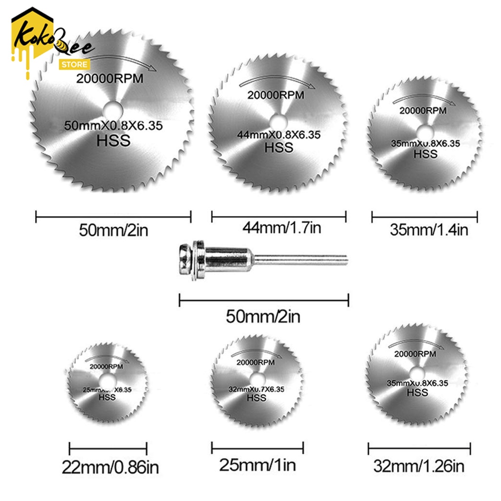 IKURA TOOLS Mini Cutting HSS 7 PCS Mata Gergaji Kayu Mini Kecil Circular Saw Blade Mini Grinder Bor Gergaji Bulat Pemotong Kayu Triplek Kerajinan Tangan Plastik Hobi Mata Gerinda Potong Kayu Mini Die Grinder Wood Cutting Disc Set 7pcs Saw Blade HSS