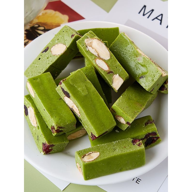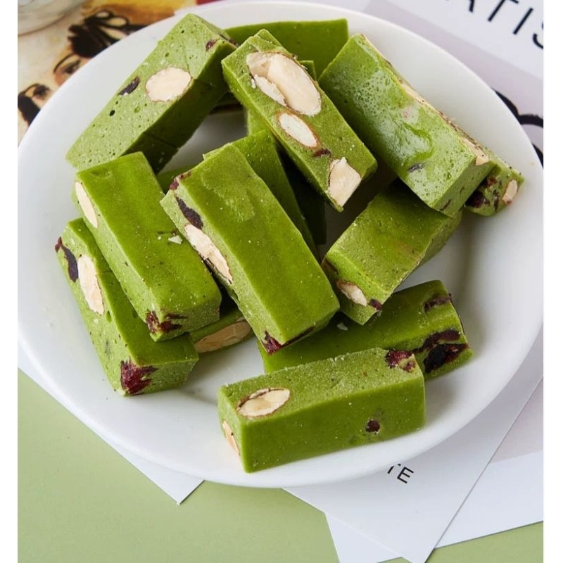 Matcha Dan Cranberry Milk Nougat Almond 80 Gram Premium Quality - Permen Milk Nougat Susu Kue Nougat Cemilan Sehat Dijamin HALAL