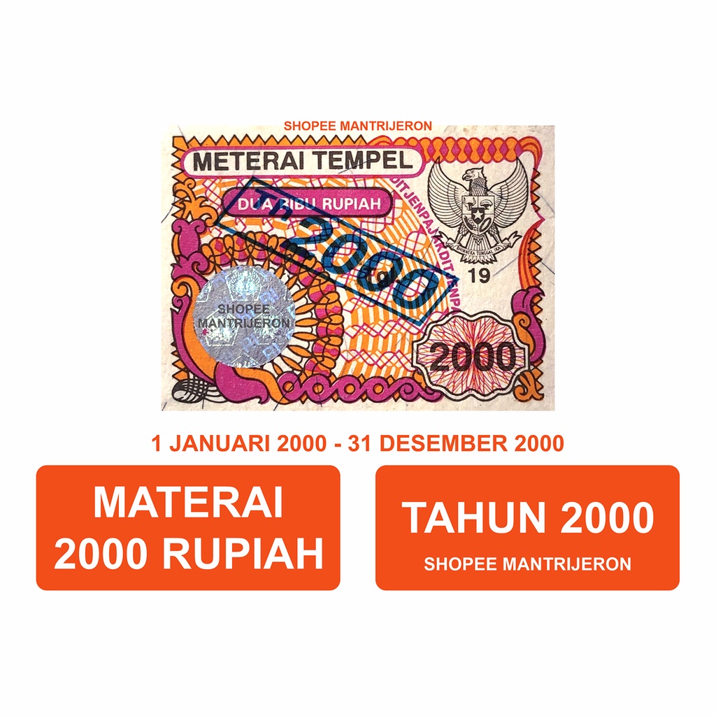Materai 2000 Tahun 2000 Meterai Tempel 2 Ribu 2.000 Dua Ribu Rupiah Lama Kuno Jadul Asli Original Kantor Pos
