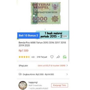 Materai Matrai Meterai Tempel 6000 ASLI original POS periode 2015 2016 2017 2018 2019 2020