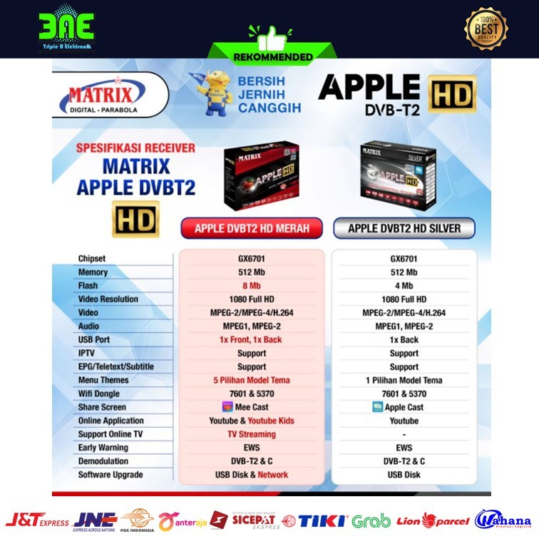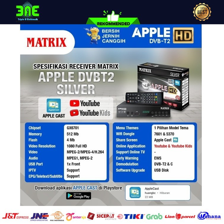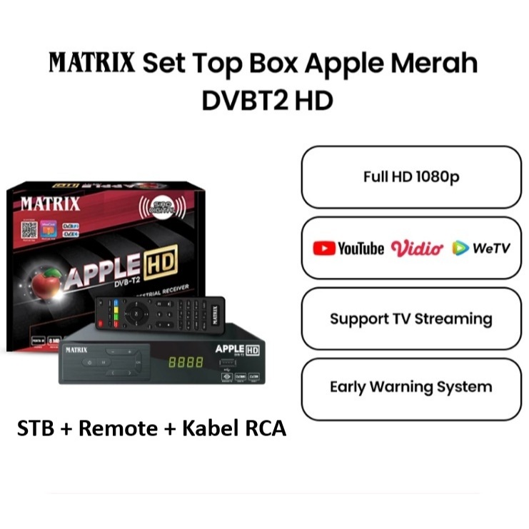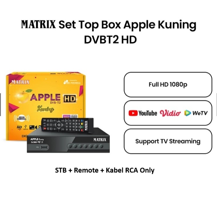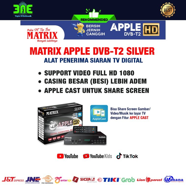 Matrix Apple Silver HD DVB-T2 Set Top Box TV Digital Channel Nasional Gratis Antena UHD DVBT2