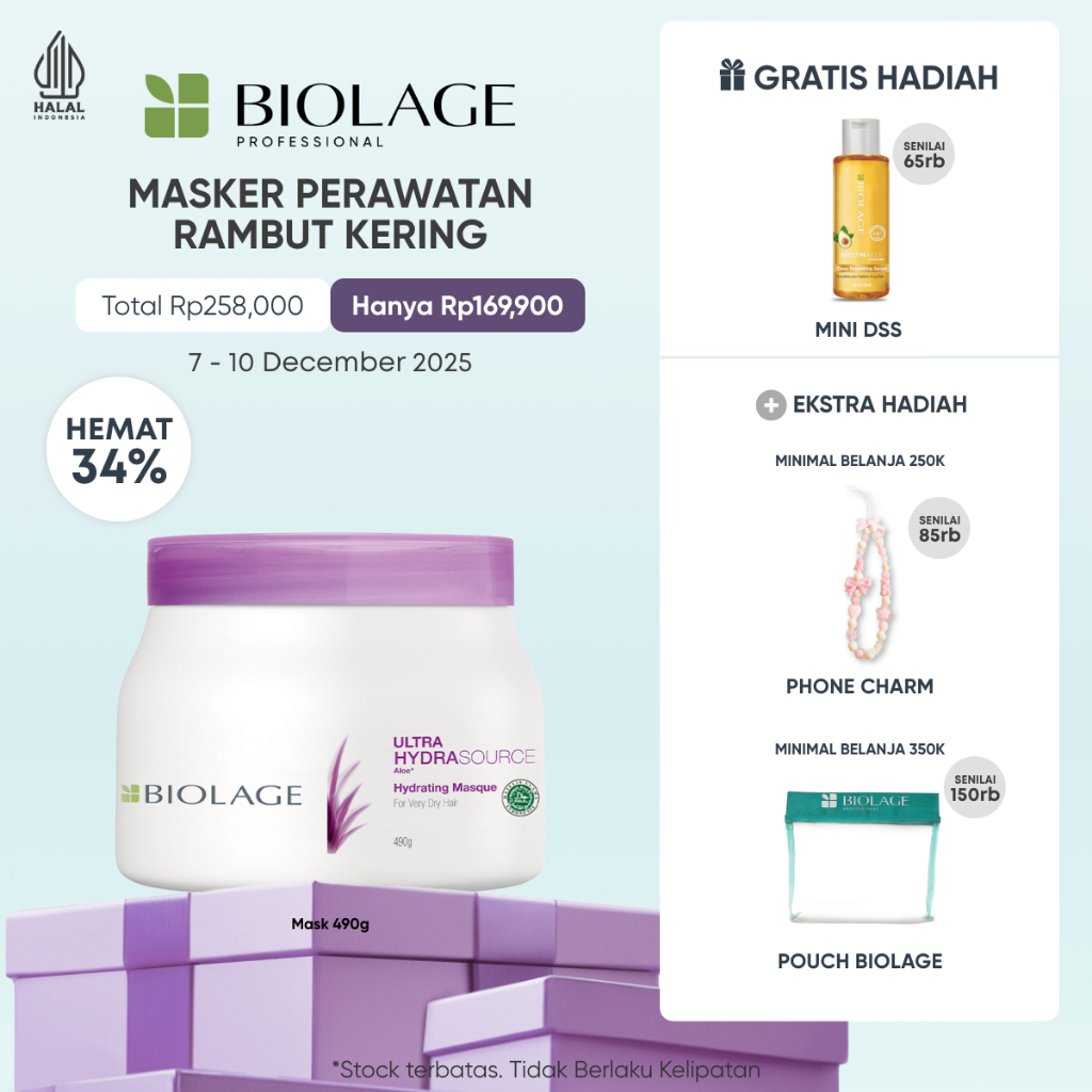 Biolage Hydrasource Mask 500 ml - Masker Professional Perawatan Rambut Kering