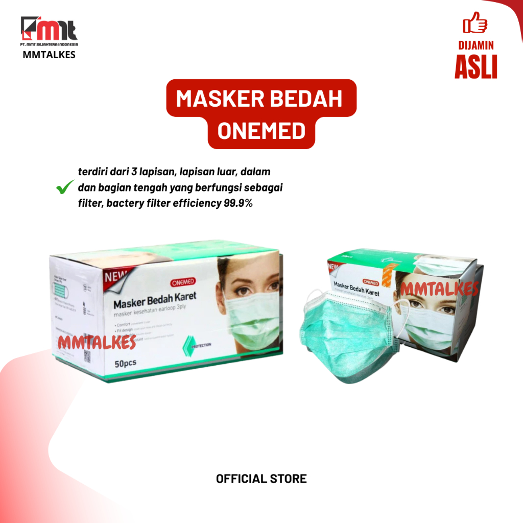 MASKER MEDIS EARLOOP ONEMED 3PLY BEDAH KARET ALL WARNA