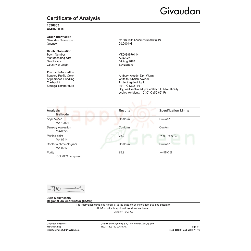 Max Aromatique Original Ambrofix Crystals Aromatic Chemicals - Asli Product Givaudan Aroma Ambergris Ambroxan/Ambrox/Ambrox Super/Ambroxide