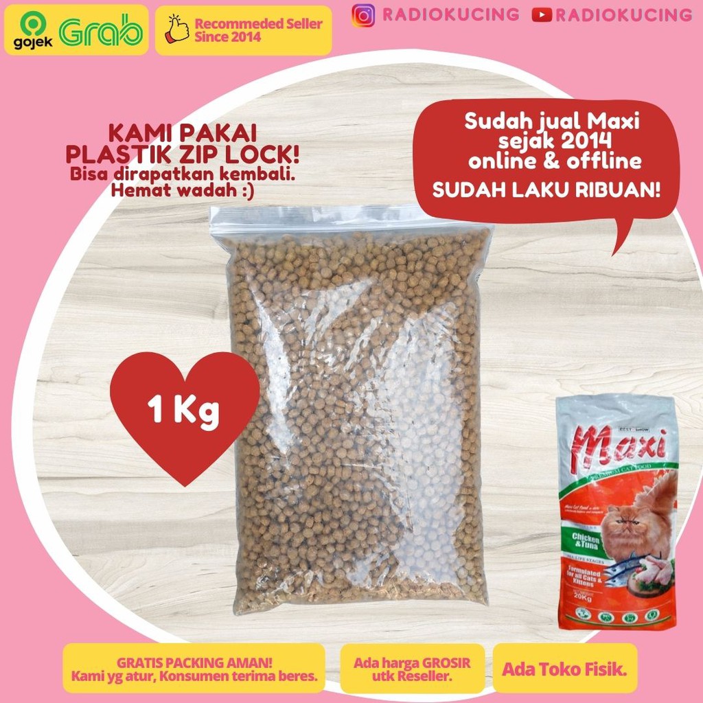 Maxi 1 Kg Repack Chicken Tuna Makanan Kucing Kitten All Stages [ JUWIES RADIO KUCING ]