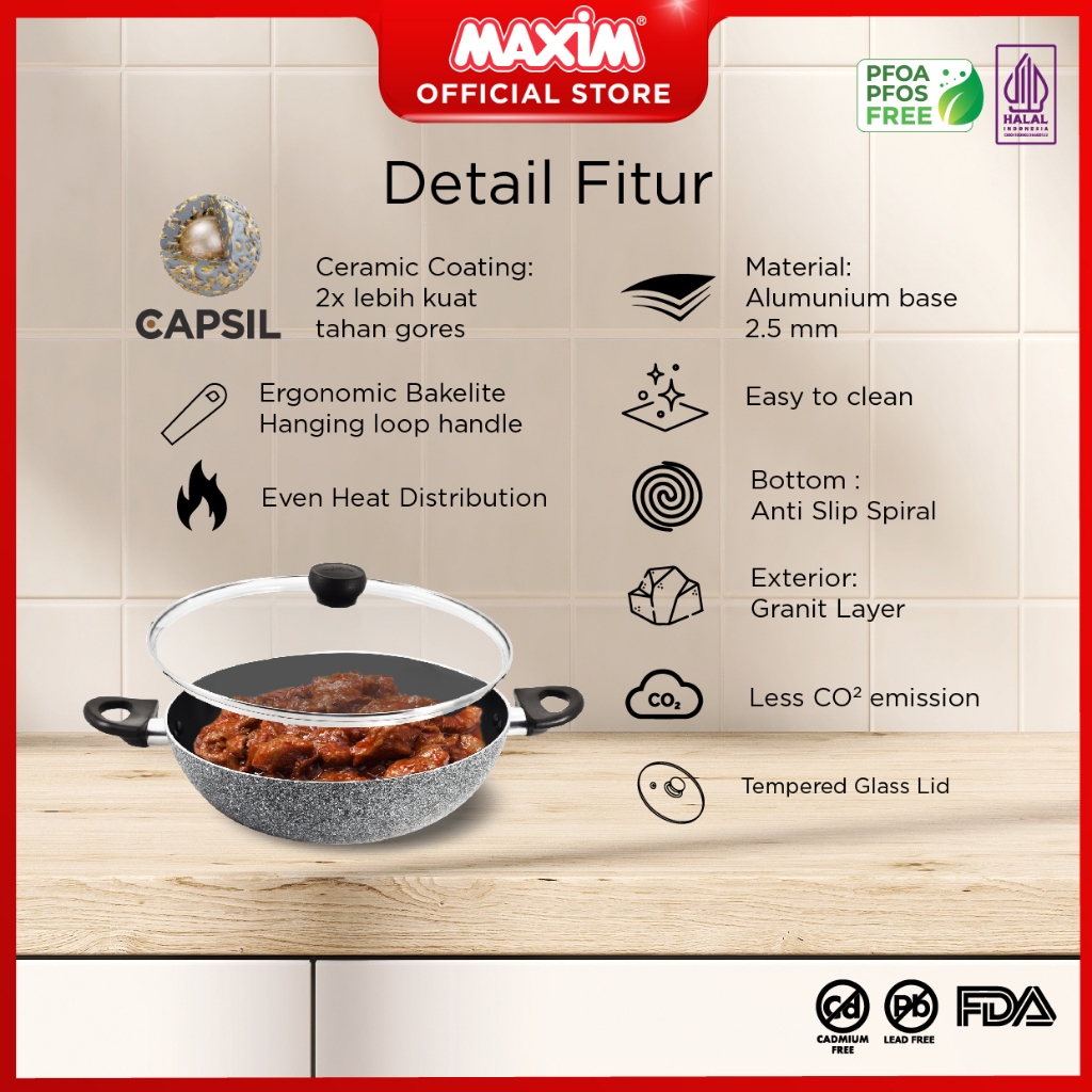 Maxim Neostone Wajan Ceramic Anti Lengket 30cm Wok