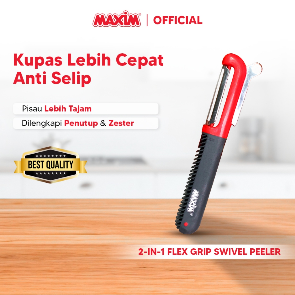 Maxim Tools Flex Grip Swivel Peeler 2in1 - Alat Pengupas Sayur / Buah / Bahan Makanan Stainless