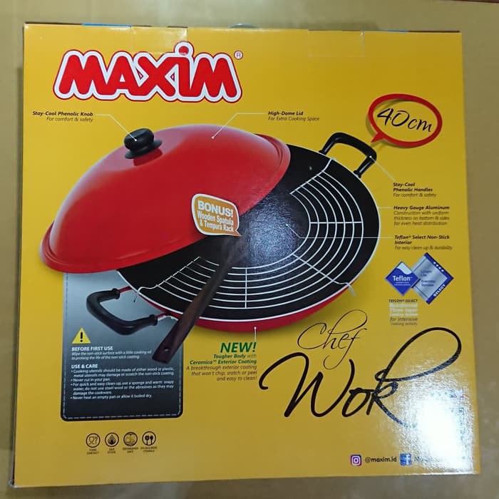 Maxim Wajan Chefwok Kuali Chef Wok 40cm Maxim pengorengan