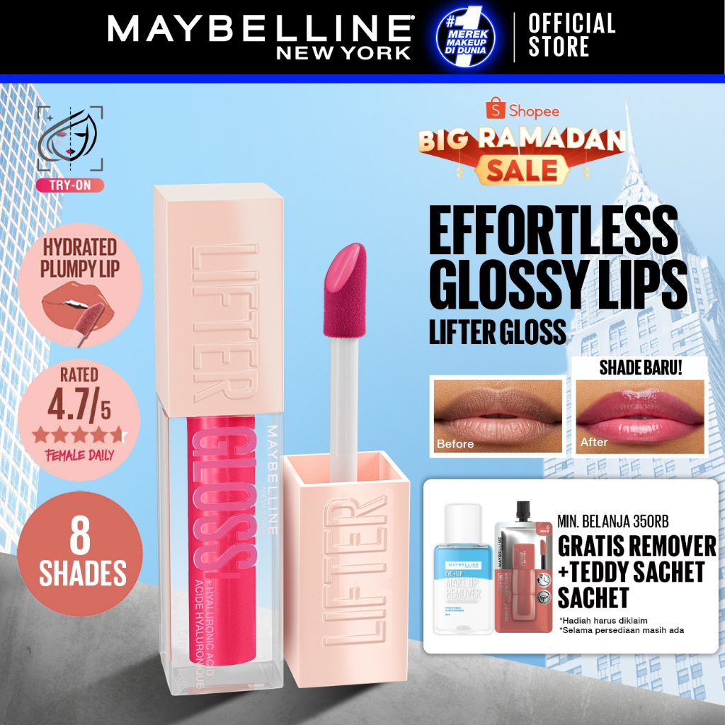 MAYBELLINE OFFICIAL Lifter Gloss Plump Make Up - 5.4ml Lip Gloss Hydrating Hyaluronic Acid