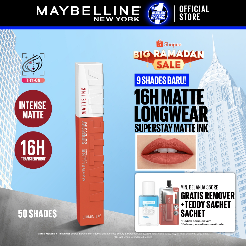 [SHOPEE BEAUTY AWARDS - BEST LIP MAKEUP] MAYBELLINE OFFICIAL Superstay Matte Ink Liquid Long Lasting Waterproof Matte Lipstick Lipcream Make Up Transferproof Tahan 16 Jam Vinyl Ink