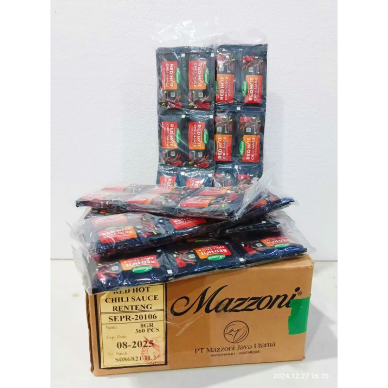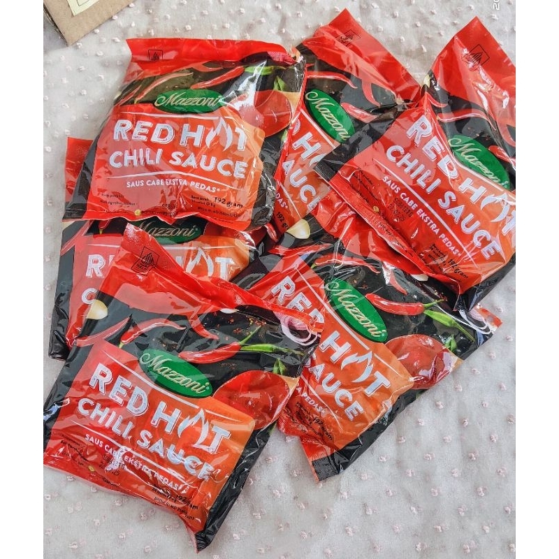 Mazzoni Saus Sachet Pedas Saus / Saos / Sachet Red Hot Chili isi 15 pack ( KARTONAN )