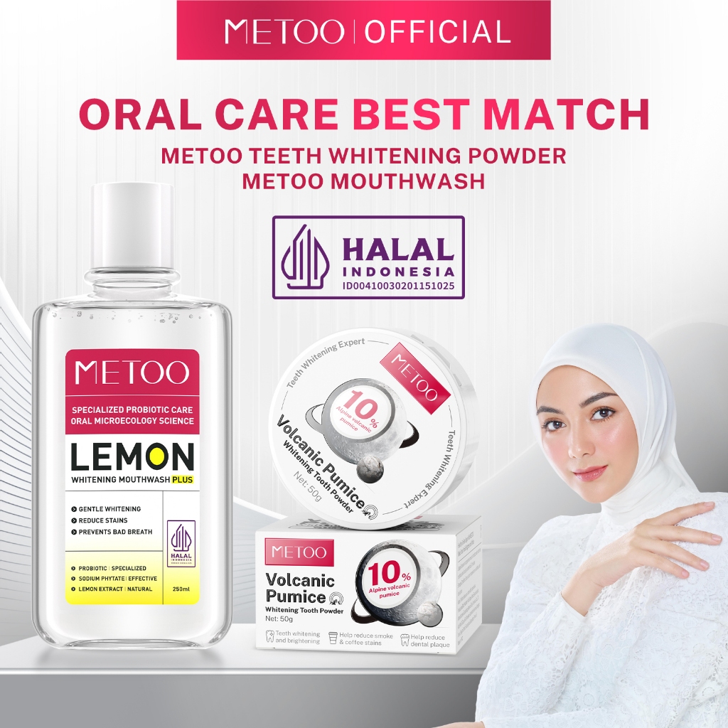 MeToo Volcanic Pumice Whitening Tooth Powder + Lemon Whitening Mouthwash 250ml/ Teeth Whitening Set /Probiotik / nafas segar / menghilangkan bau mulut / kumur karang gigi / mengurangi noda pada gigi / non-alkohol