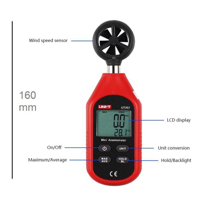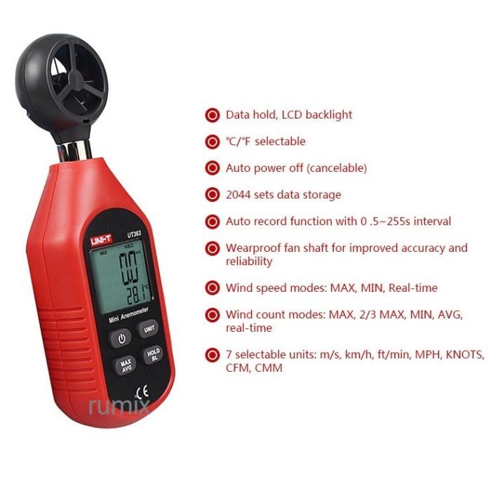 Measuring Uni-T Ut363 Anemometer Alat Ukur Kecepatan Angin Digital Wind Speed