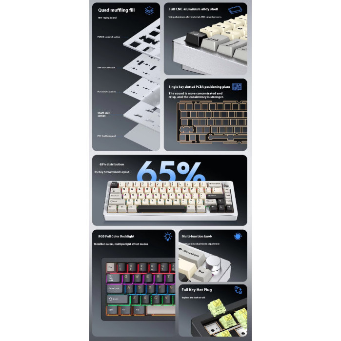 Mechanical Keyboard Dark Alien R65 Alumunium Case
