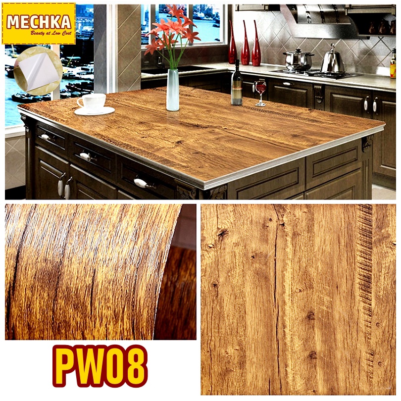 Mechka PVC Sheet Sticker /50cm Motif Kayu Berserat Bertekstur Stiker Wallpaper Kayu PVCKAYU50CM