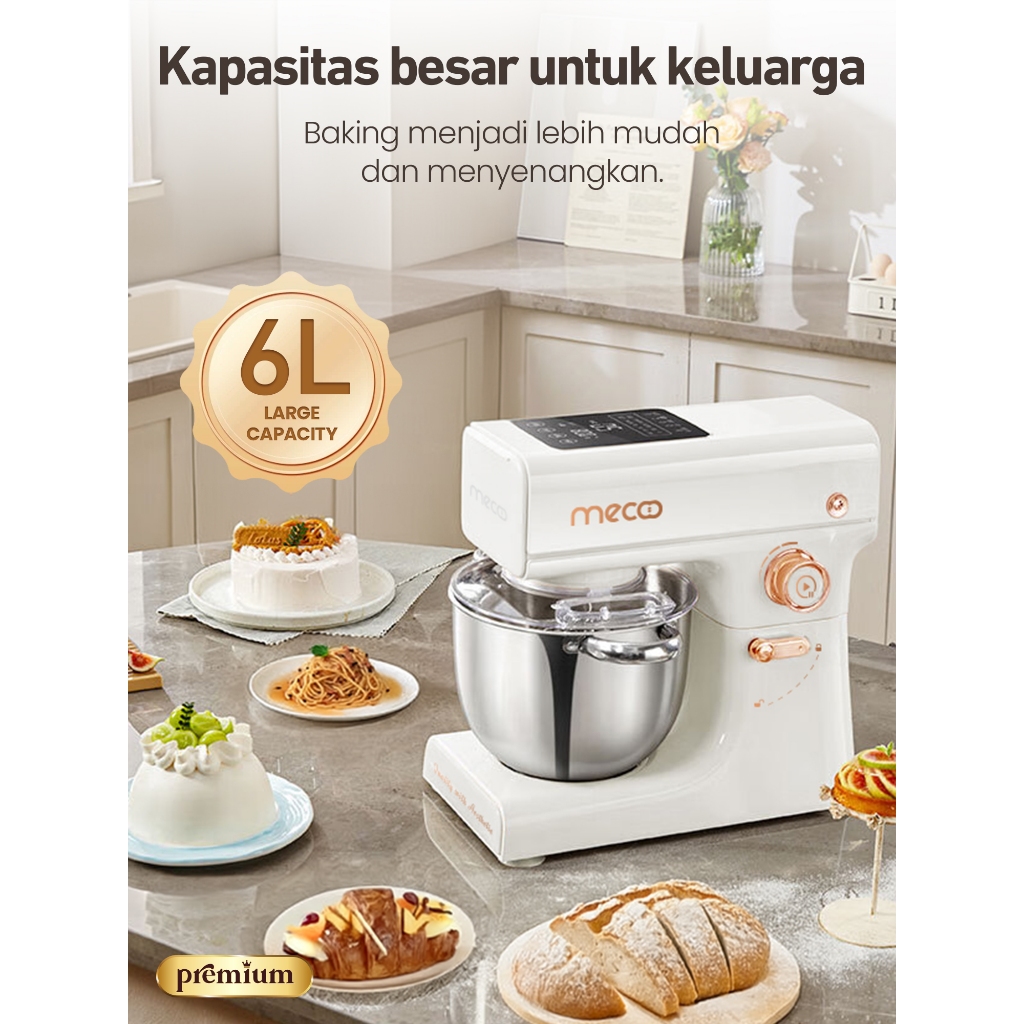 Mecoo Aesthetic Premium Stand Mixer 6 Liter Smart LED Silent Motor Ultra Stable