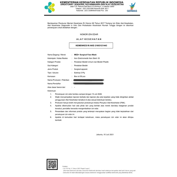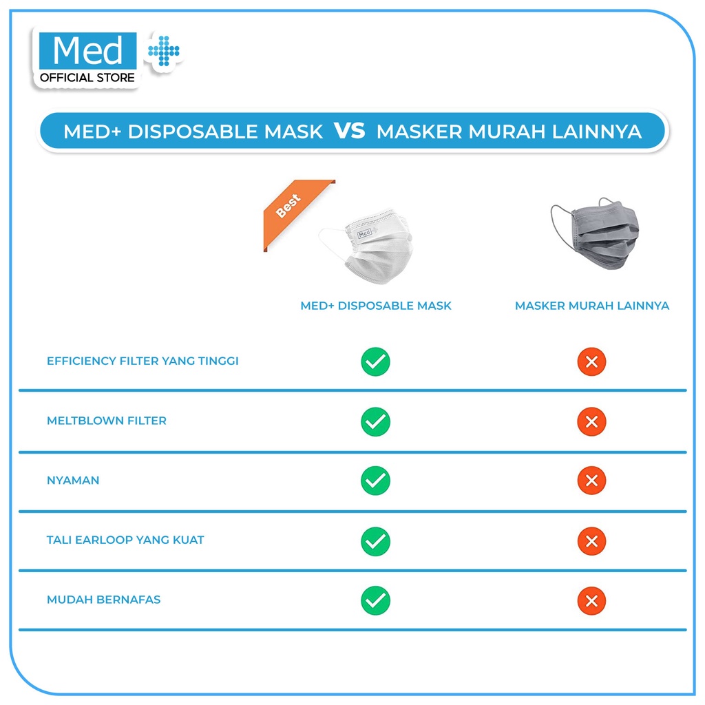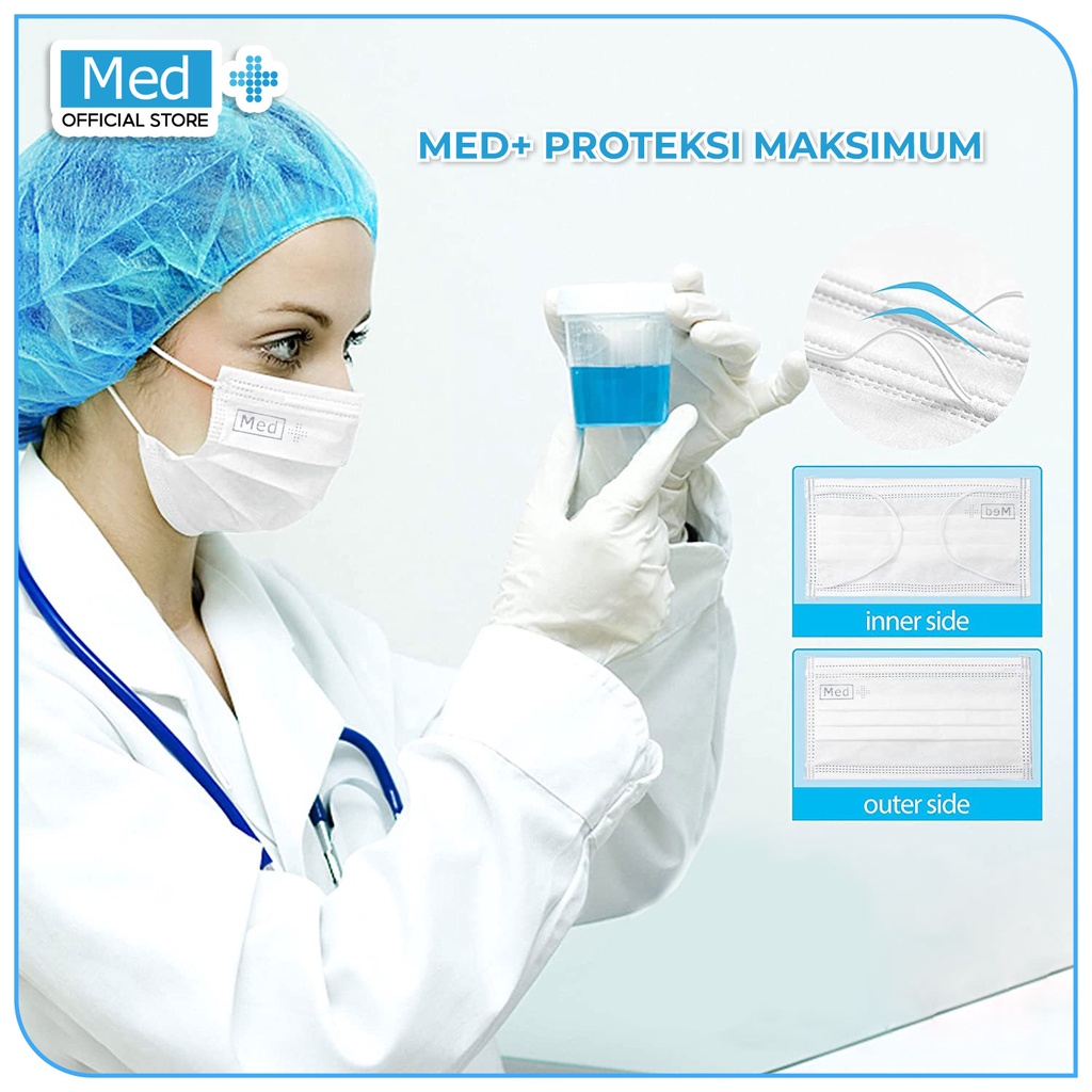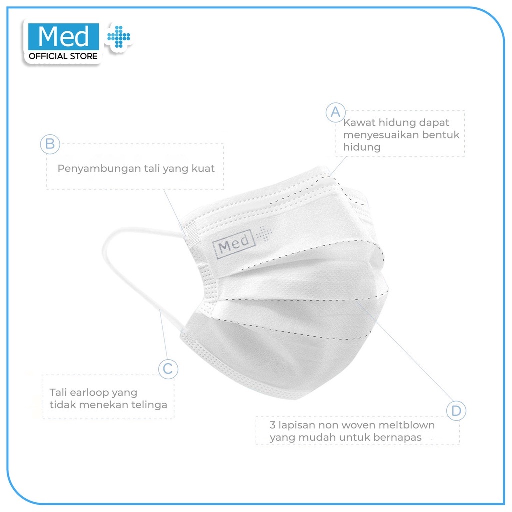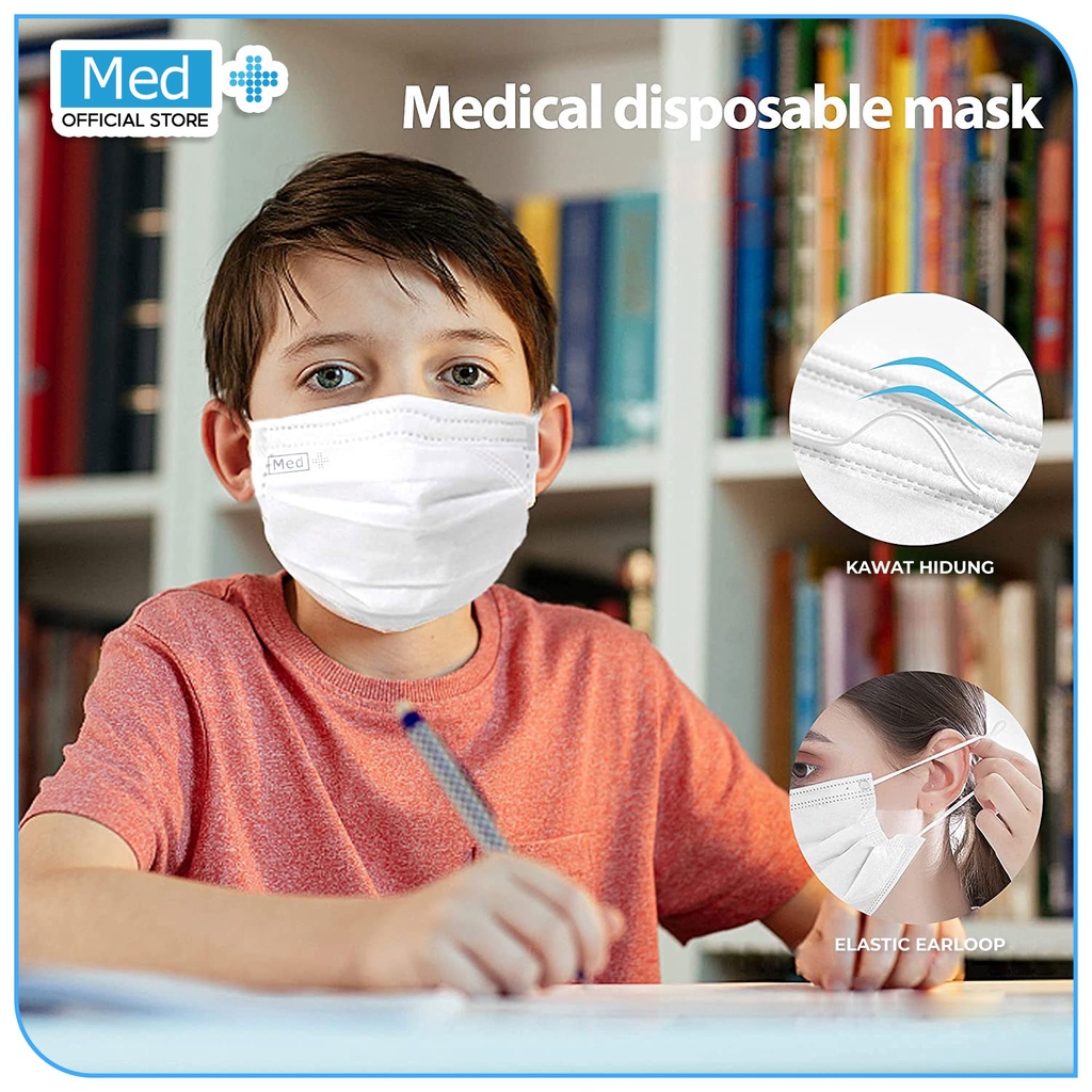 Med+ Masker 3Ply Putih 50 Pcs / Masker 3Ply Kemenkes Disposable Face Mask
