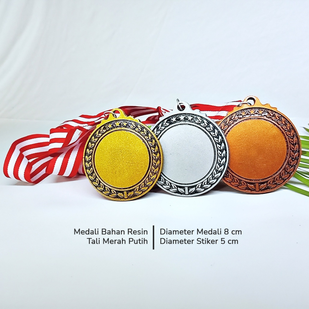 Medali Warna Perak Plus Tali Merah Putih Medalion Mendali Silver Penghargaan Lomba Kejuaraan Olimpiade Hadiah Wisuda Souvenir Acrylic Akrilik Emas Gold Perunggu Bronze 100% Bahan Resin